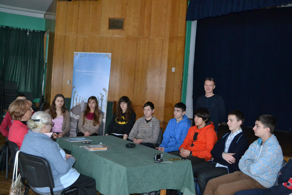 The story of her first love to a young partisan who died at Osuchy evoked a profoundly emotional response from the listeners. Mrs. Poździk’s testimony was illustrated with poems she has been writing for decades. The captivated audience was made up of pupils of Gymnasium Nr 4 (3rd class) who asked for another meeting. They want to know more about Mrs. Poździk’s life after the war.