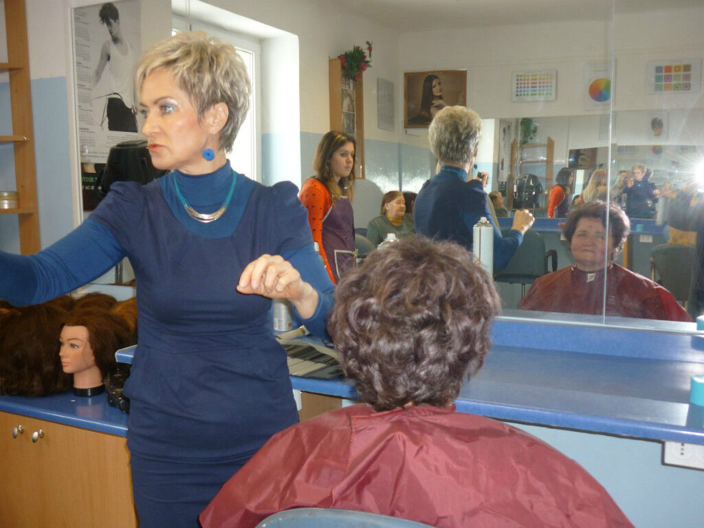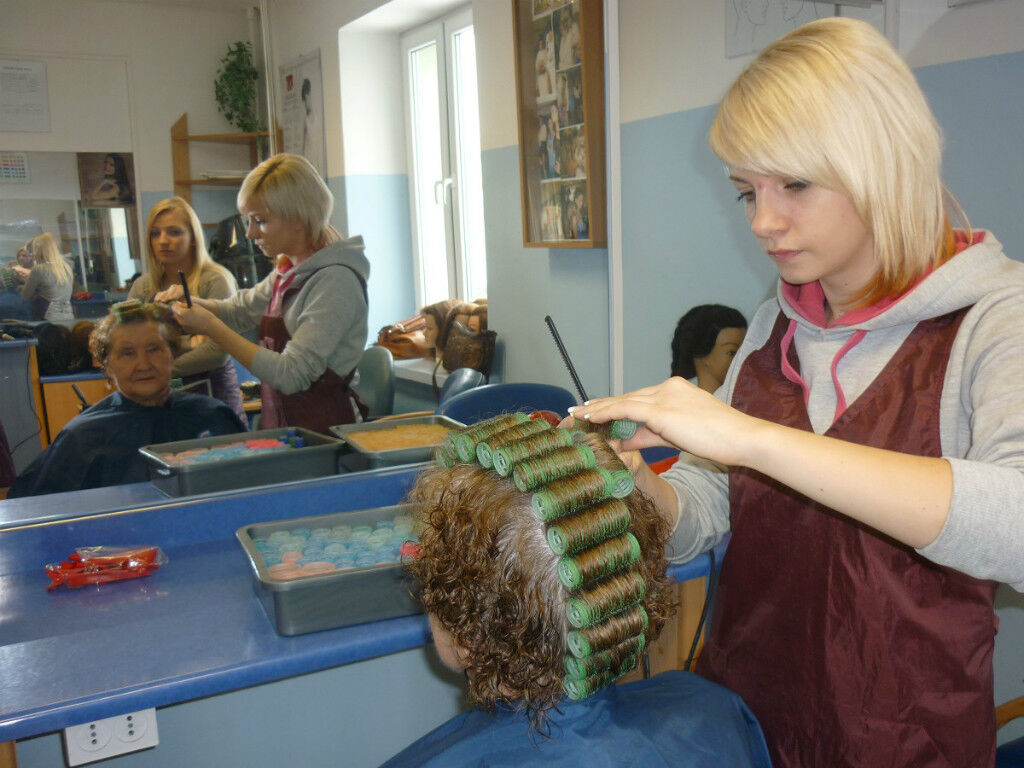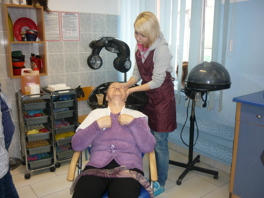 After a cordial welcome, the Centre’s future hairdressers cut and styled our ladies’ hair while the beauticians applied professional make-ups and gave manicures. All treatments were supervised by the experienced teachers, Maria Szewczuk and Dorota Borys-Szymanek, as well as the school’s headmaster, Waldemar Pawełczuk.