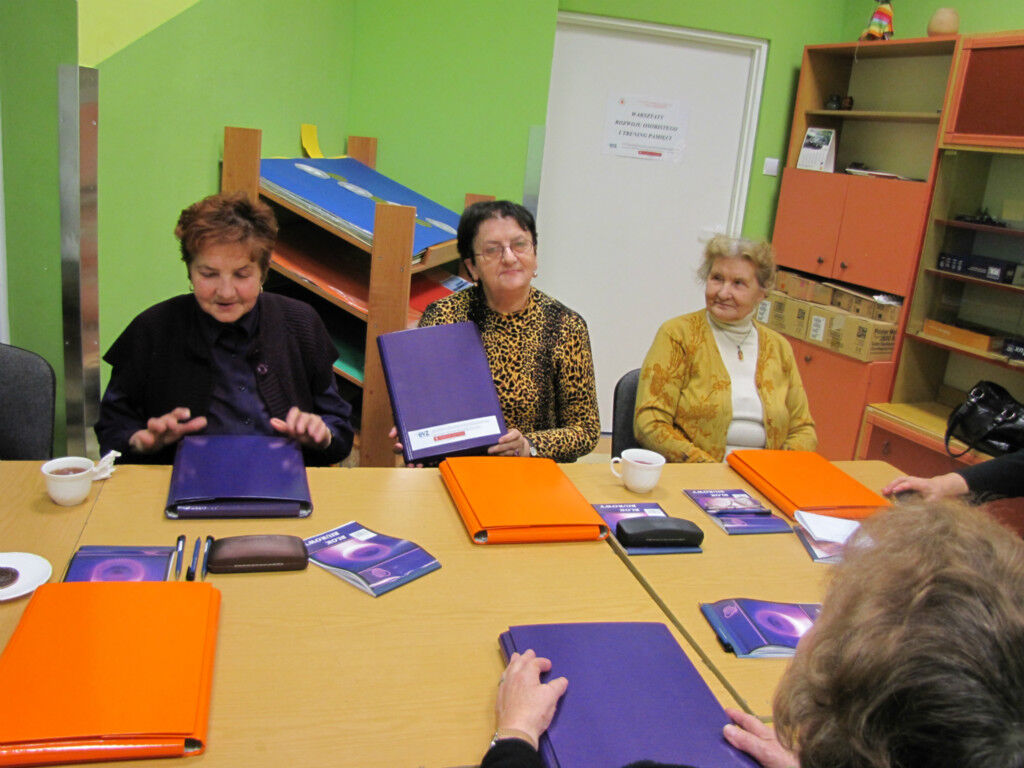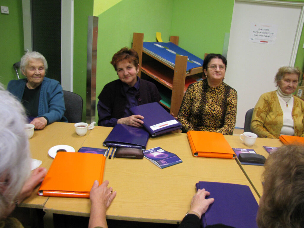 What is more, lectures on safety and senior health are organized in the Centre. Supervised by Ewa Popławska, the Centre was brought to life as a part of two projects jointly financed by the Foundation “Remembrance, Responsibility and Future” and The Ministry of Labour and Social Policy. The project’s creators and coordinators are Ewa Szczepańska and Krystyna Rybińska-Smyk. Other forms of activities include personal development and memory training (10 participants) as well as computer workshops (10 participants). The Centre also arranges cultural outings (the latest one was the screening of “Anna Karenina”). High attendance and the satisfaction of the senior members attest to the importance of such forms of support.