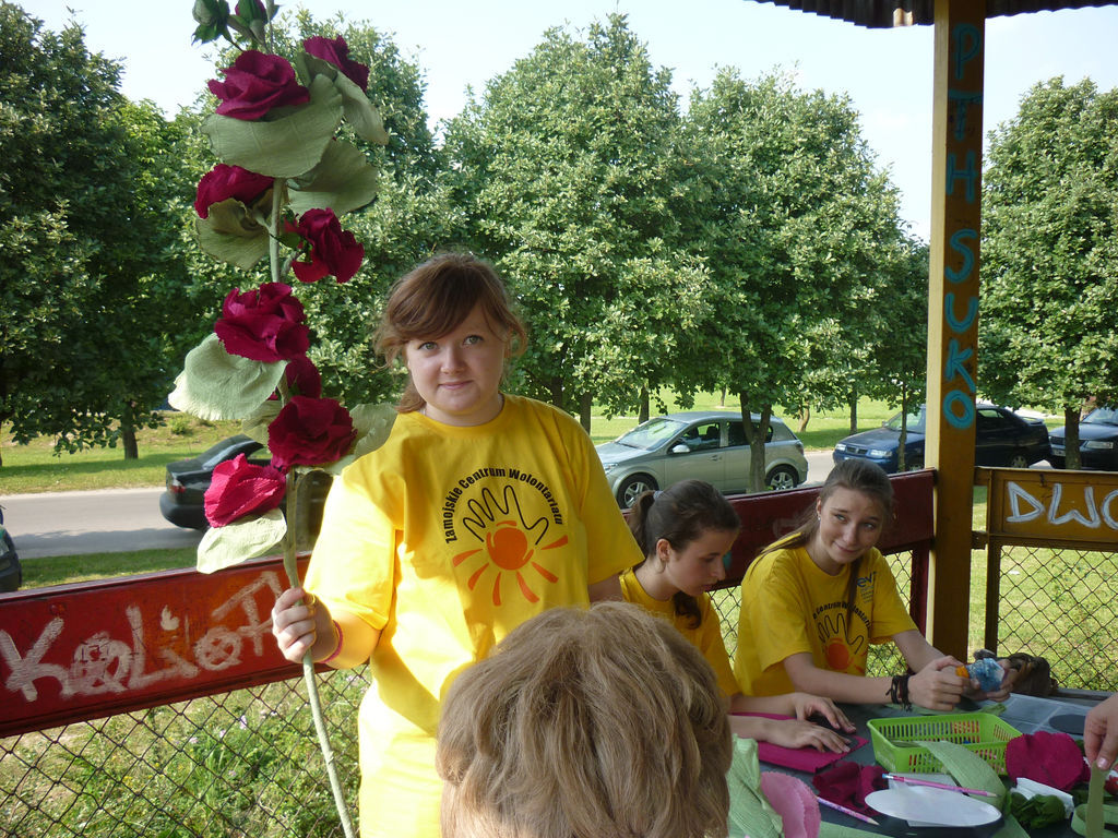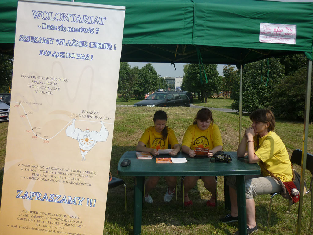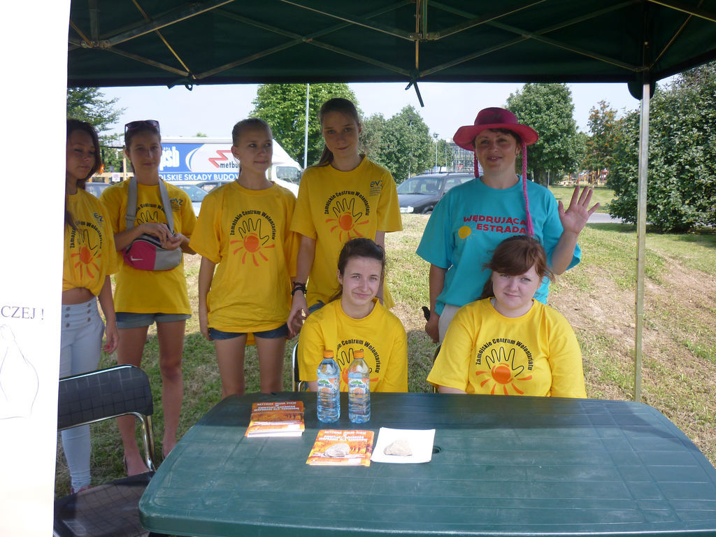 Świetnie spisywali się młodzi wolontariusze z Klubu działającego przy Osiedlowym Domu Kultury „Okrąglak” podczas imprezy plenerowej „Wędrująca Estrada”, która odbywała na terenach zielonych Spółdzielni Mieszkaniowej im. Jana Zamoyskiego. Tydzień przed imprezą rozklejali plakaty i roznosili ulotki, a w jej trakcie - służyli wszystkim pomocą i wsparciem, a także promowali ideę wolontariatu. Ich obecność niewątpliwie przyczyniła się do uatrakcyjnienia imprezy, a także do sprawnego jej przebiegu. Koordynatorką Klubu jest Ewa Popławska.
