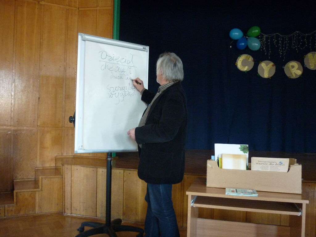 A lecture given by Zbigniew Dmitrocy was a feast for the spirit for seniors writing poetry. In the first part of the of the meeting, the guest talked about his work, his interests and presented his artistic output: several dozen books for children, teenagers and adults. In the second part, he talked about the history of the limerick, which is a short poetic form. The poet read a dozen or so of his own works and suggested that the audience wrote a limerick. The result of their joint work is as follows: