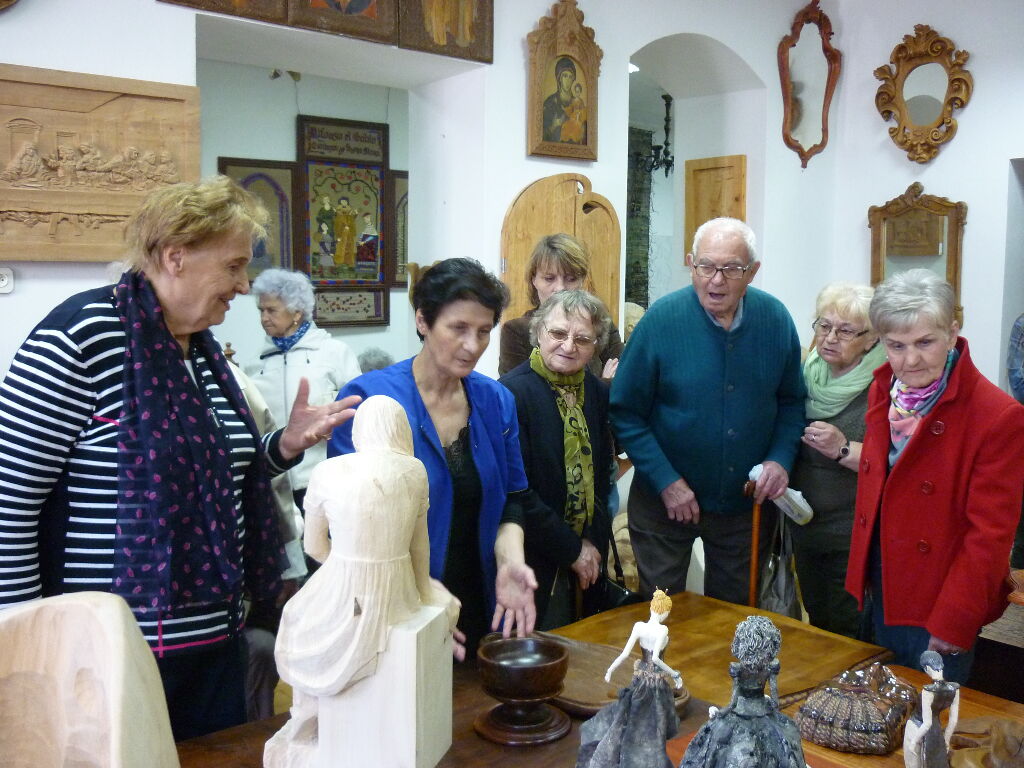 Seniorzy z Senioralnej Stacji Socjalnej 4 kwietnia odwiedzili zamojskie Liceum Plastyczne. Zostali zaproszeni przez panią pedagog Katarzynę Manachiewicz i wolontariuszy z klasy Ia. Gości oprowadziła po szkole uczennica klasy IIIa Ewa Haraf, a informacji o programie nauczania udzielali profesorowie Maciej Sęczawa i Zygmunt Jarmuł. Seniorzy z ogromnym zainteresowaniem oglądali pracownie i prace uczniów wyeksponowane na szkolnym korytarzu. Zachwycali się różnorodnością prac dyplomowych pozostawionych w archiwum. Próbowali też swoich sił pod okiem uczennic wyplatających gobeliny. Zwieńczeniem wędrówki po tej niezwykłej placówce była wystawa “Zamojska Lalka Historyczna”. Miniatury osobowości naszego miasta zrobiły wrażenie! Z nadzieją, że to pierwsza, ale nie ostatnia wizyta, seniorzy pożegnali gościnną szkołę i jej uczniów.