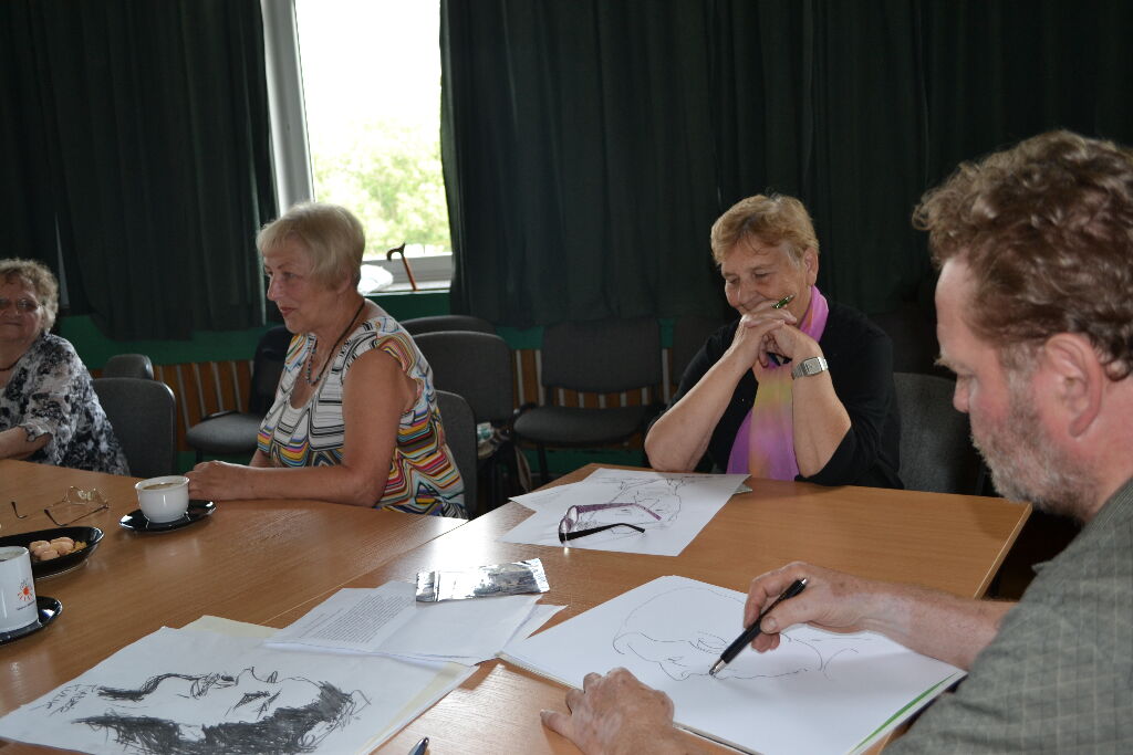 Senioralną Stację Socjalną odwiedził pan Franciszek Łasocha, zamojski architekt, rysownik i karykaturzysta. Opowiedział seniorom o swoich zainteresowaniach, pasjach, podróżach, karierze. Najciekawsza część wykładu związana była z powstawaniem karykatur. Chętni pozowali, a artysta obdarowywał ich portretem. Spotkanie dostarczyło obecnym wiele wrażeń i radości.