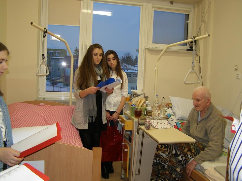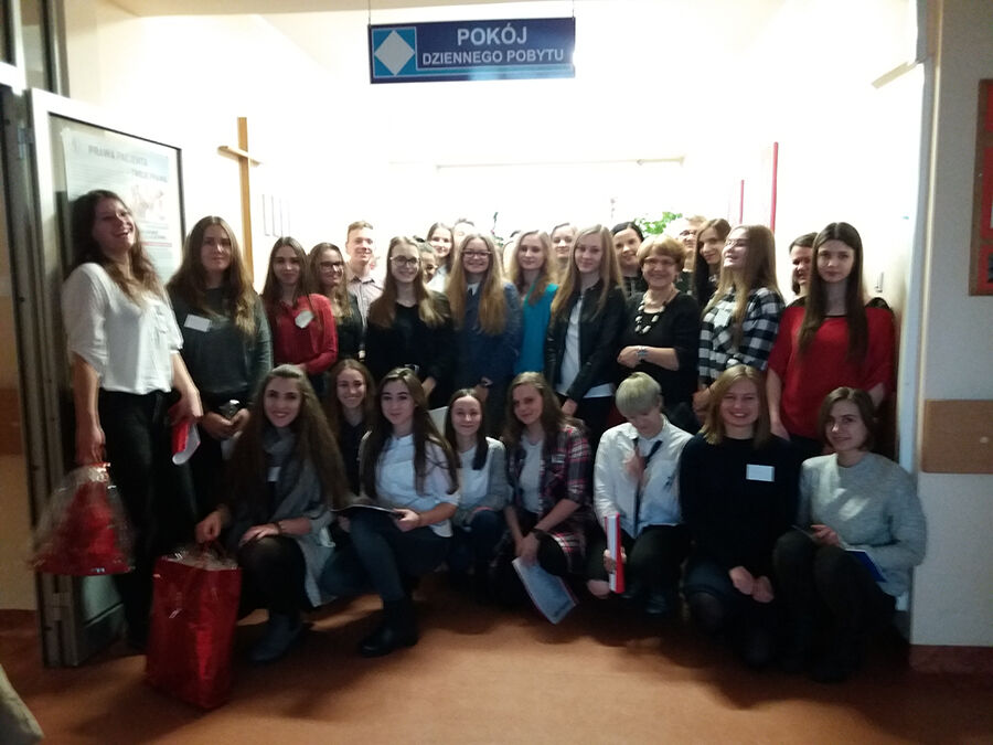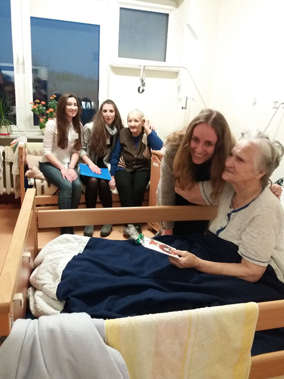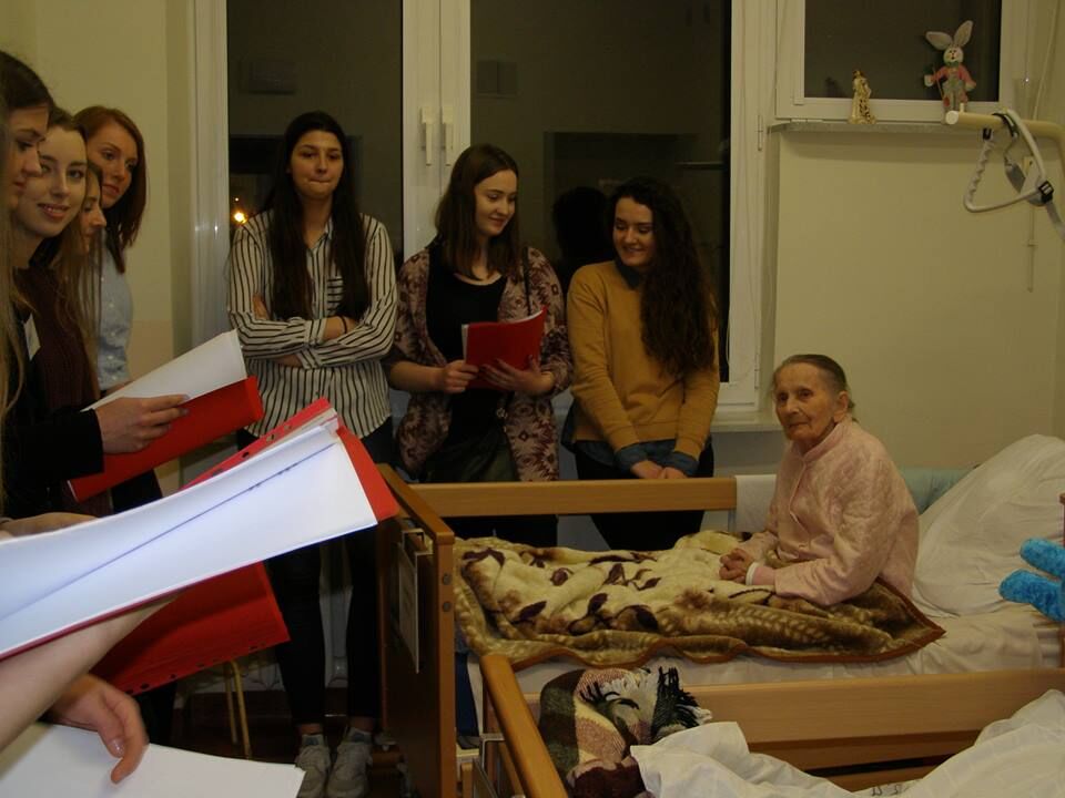 W szpitalu wolontariusze odwiedzili wszystkie sale obdarowując seniorów świątecznymi upominkami, słodyczami, uśmiechem i kolędami. Tym szczególnym kolędnikom akompaniowali na gitarze, skrzypcach i flecie uczniowie z I LO. Tę oryginalną, szpitalną wieczornicę zorganizowała Małgosia Ostasz i wolontariusze, którzy pracują tam na codzień.